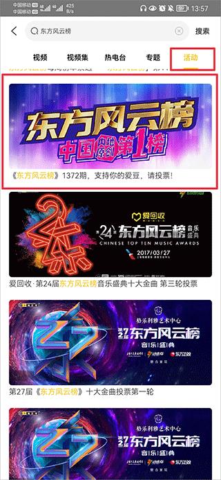 2、然后在栏目列表中可左右滑动然后选择活动页面,并在活动页面中点击正在进行的投票活动