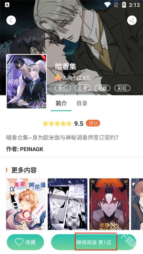 《画涯》怎么设置夜间功能?1、进入软件,选择喜欢的漫画,点击继续阅读;