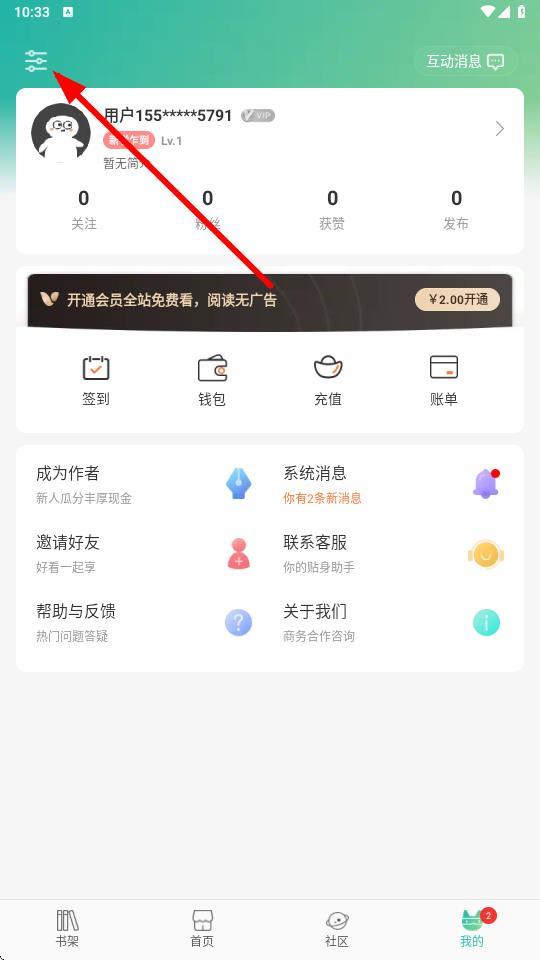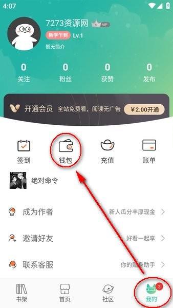进入“钱包”后,点击“我的涯币”;“我的书币”和“我的月票”也在这里;
