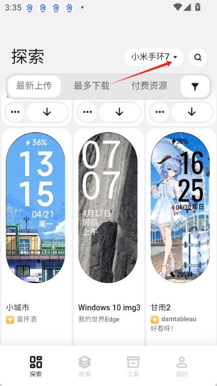《小米表盘自定义工具》怎么用1.打开米坛表盘自定义工具后,在右上角选择自己的手环型号