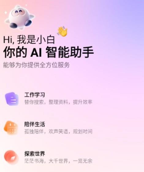 《问小白》小编点评:问小白是一款非常有趣实用的ai服务软件,软件内还可以帮助用户找到全新多元的服务内容,并且感受到优质丰富的资源类型,在这里感受到自己喜欢的ai智能服务,让用户在这里获取自己需要的资源信息,赶紧下载来使用吧。