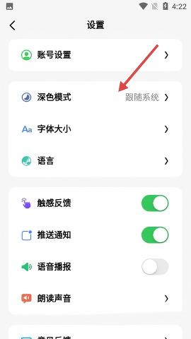 4、你可以选择【跟随系统】、【亮色】或【深色】,直接点击【深色】来完成设置,给眼睛一个更加舒适的体验吧。