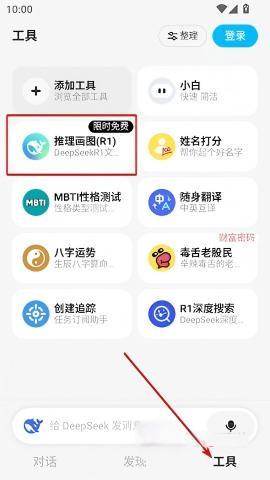 2、在主页上,转到右下角的【工具】选项,然后选择【推理画图】。
