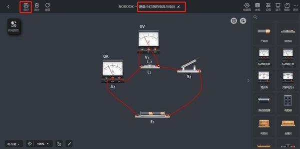 4、点击标题可以修改实验名称,将实验保存为对应的名字,点击“保存”实验,即可将实验保存到个人资源当中。