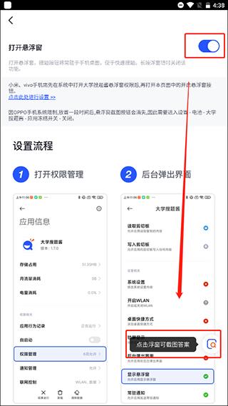 3、查找答案浮动窗口:手机在线答题如何查看答案?打开浮动窗口查找答案,截图搜索问题更方便!