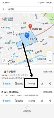 《搜狗地图》怎么看街景首先打开搜狗地图,输入想了解的一个地区,比如:五马街。然后就能定位到五马街,这个时候点击详情。
