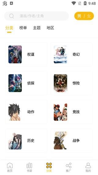 2.漫画的分类更加细化,爆笑、血腥、都市、玄幻等题材一应俱全,想看什么就选什么;