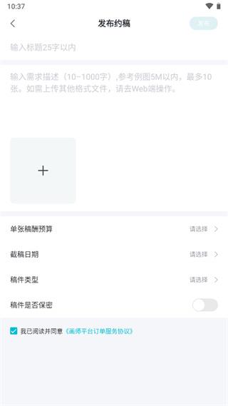 2、右下角“ ”,然后点击“发起约稿”;