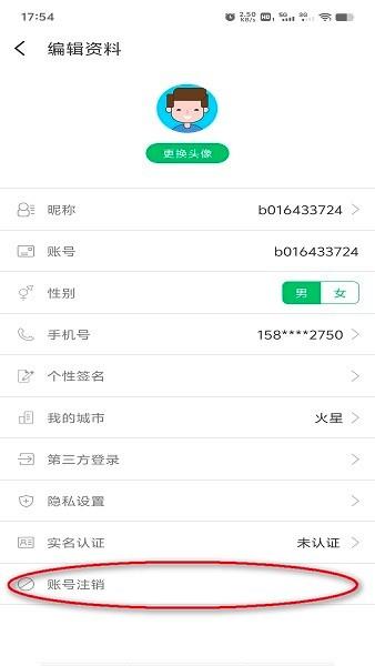 编辑资料里面点击最后一个的“账号注销”;
