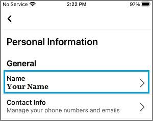 2、在下一个屏幕中,转到“设置与隐私” > “设置” > “个人信息” ,然后点击“您的姓名”