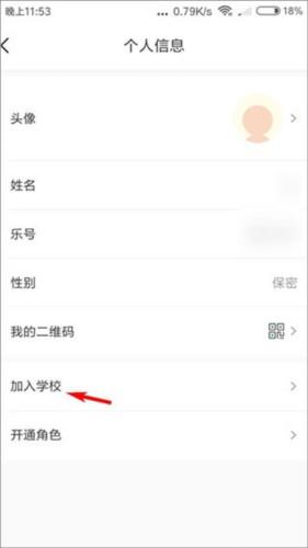 3、进入个人信息页面,点击“加入学校”;