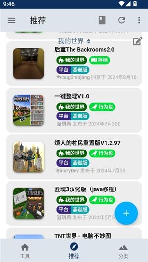 2、来到推荐界面,在这里我们可以看到很多玩家自己上传发布的模组