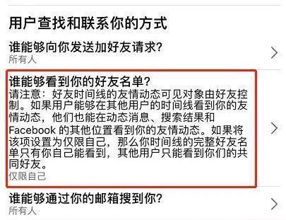 5.找到【谁可以查看你的好友列表】选项,点击进入权限设置。