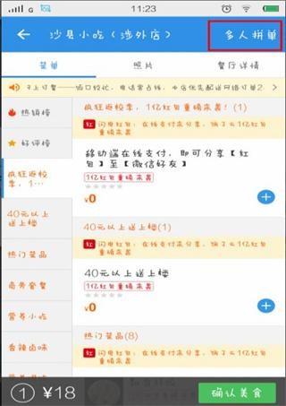 2、进入后点击右上角“多人拼单”。