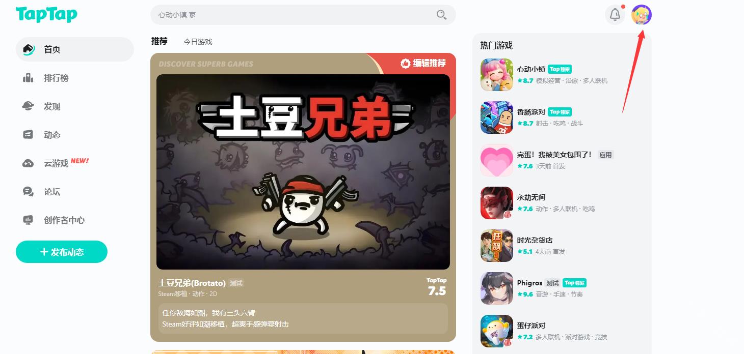 软件操作流程1、打开toptop(taptap)网页https://www.taptap.cn/后,登录要退款游戏的账号,点击右上角的头像