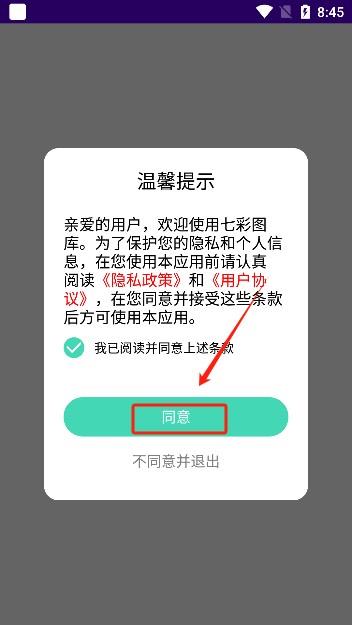 《七彩图库》么用?1、打开软件同意软件的相关隐私协议
