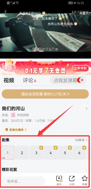 4、进入剧集播放页可选择单集观看,支持下载与加入收藏列表。