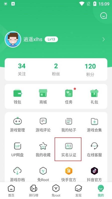 2.在个人中心中找到并点击实名认证选项;