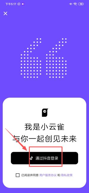 2、勾选协议后选择"通过抖音登录",完成账户验证。
