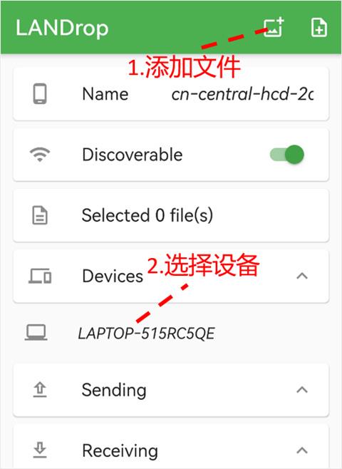 1、首先在手机端点击软件右上角的两个“+”号,选择自己要传输的图片、视频或文档,接着再在下方的【Devices】栏选择电脑的设备名称;