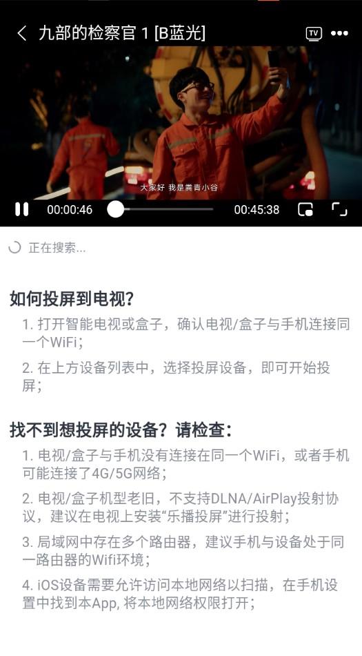 温馨提示:手机要与投屏设备处于相同网络下!