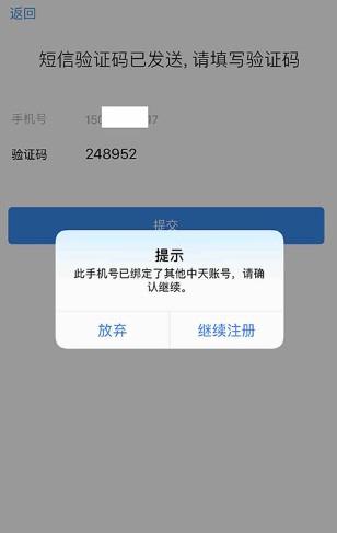 1、点击首页的“申请新的中天帐号”,输入要申请的手机号码。