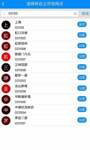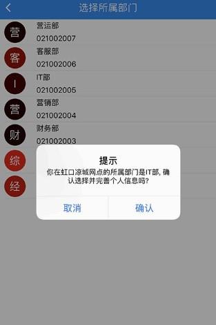7、如果注册帐号属于直营公司,会提示自己所属的部门;如果注册帐号属于加盟网点,需要选择自己所属的部门。