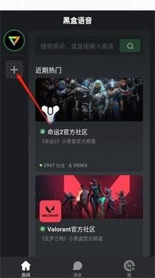 《黑盒语音》怎么加好友1、进入黑盒语音后点击左侧的加号。