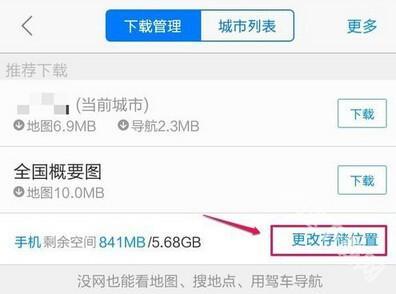 3、这里点击更改高德地图官网APP存储位置按钮