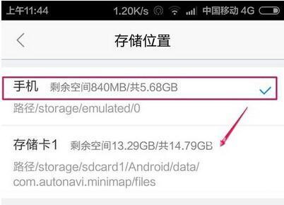 4、选择手机存储即可