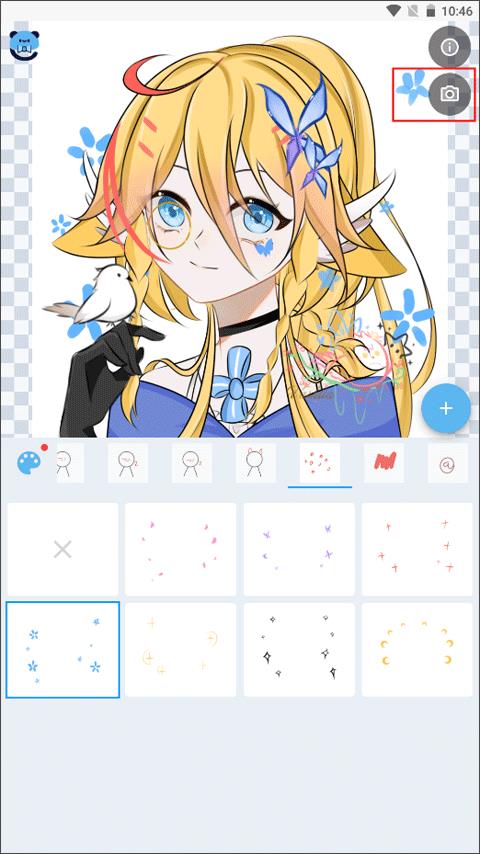 2、在界面中如果想对图片进行编辑的话就可以选择下方的功能选项,点击右上方的照相机图标。