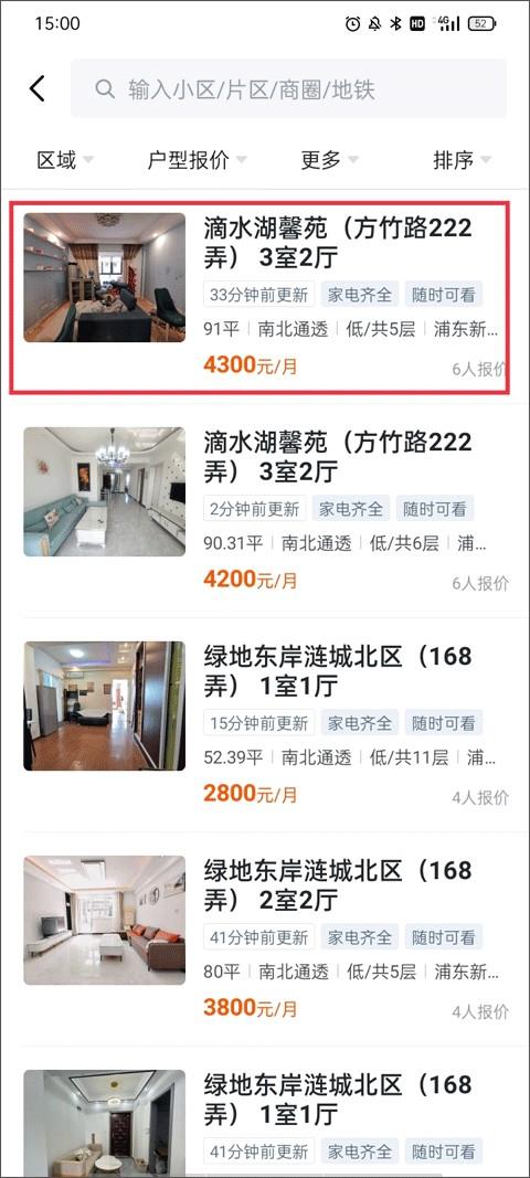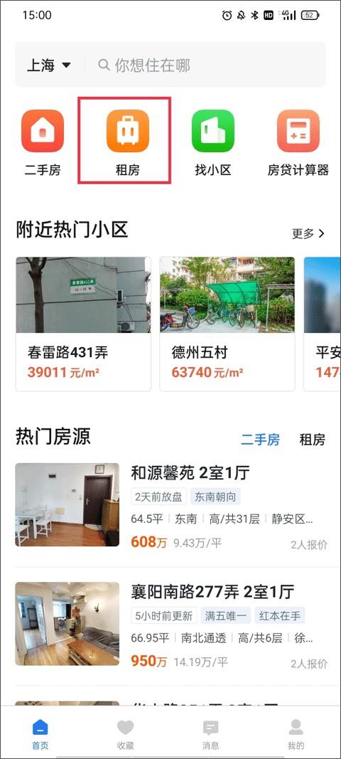 1、在首页中找到你想要租或购买的房子,或者在搜索框输入关键词来找到合适的房源。