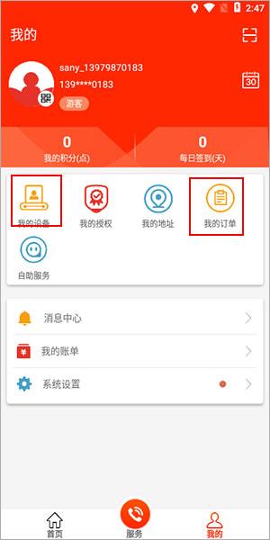 4、点击我的可以看到自己的设备和订单。
