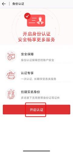 2、在身份认证页面中点击开启认证按钮;