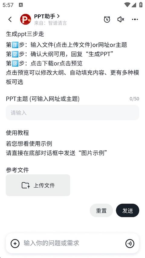 2、在首页找到智能体PPT助手点击进入,依据下方提示输入问题需求以生成PPT。