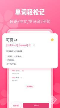 日语背单词是一款特别实用的日语学习软件,里面的学习资料很丰富,不管是词典还是练习内容,都能让你全面提升日语水平。它还提供专业的记忆曲线帮助巩固知识,还有不少免费的日语课程可以学习,甚至有专业老师在线答疑,帮你纠正发音。