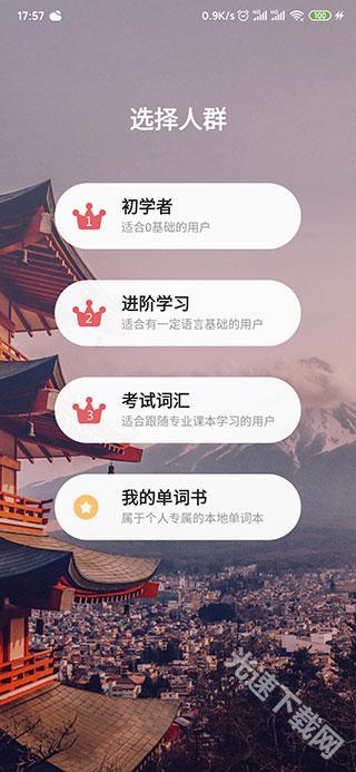 《日语背单词》使用方法1、在本站下载安装,并且运行莱特日语背单词,然后选择是合适阶段: