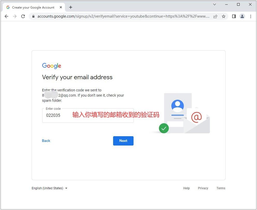 5、在该页面输入填写的邮箱收到的验证码,然后点击“Next”按钮。