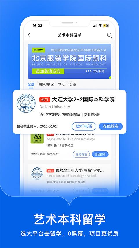提供国际知名高校报名渠道,支持艺术考生申请国外大学。