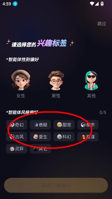 选择兴趣标签进入主页
