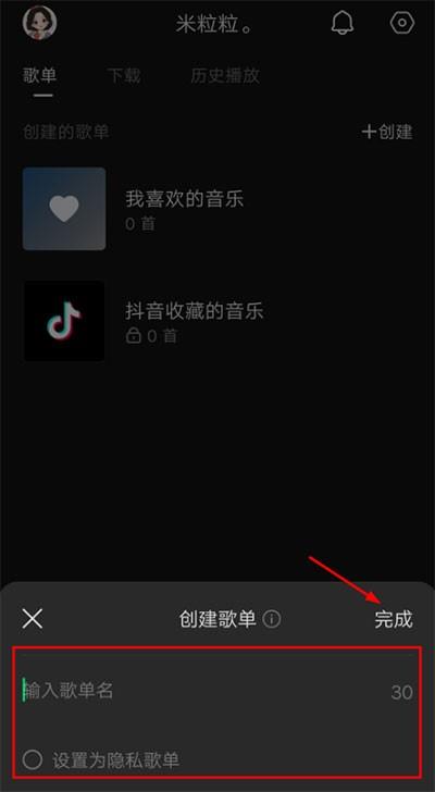 3、弹出窗口,输入歌单名称后,点击“完成”即可。