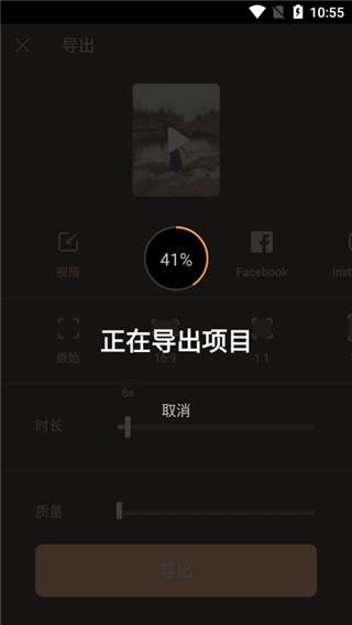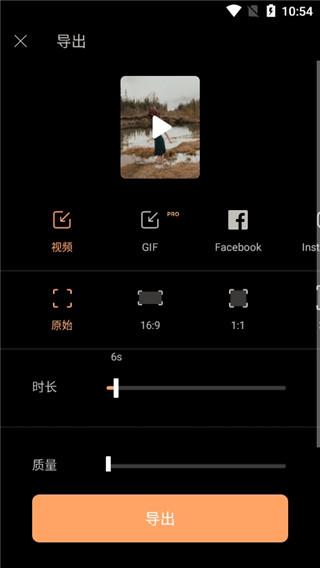 1、首先点击右上角的导出功能来到导出的页面,然后再这里选择一个视频,还可以选择导出视频的时长、质量和画面比例