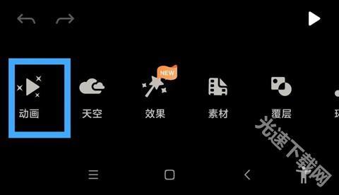 2、素材导入后,首先点击“动画”。