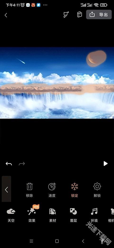 5、点击“锁定”,涂抹不需要动的地方,涂抹过多可点击“锁定”旁的“解锁”修改,也可以撤销。涂抹后点击“速度”,调整流动速度的快慢。