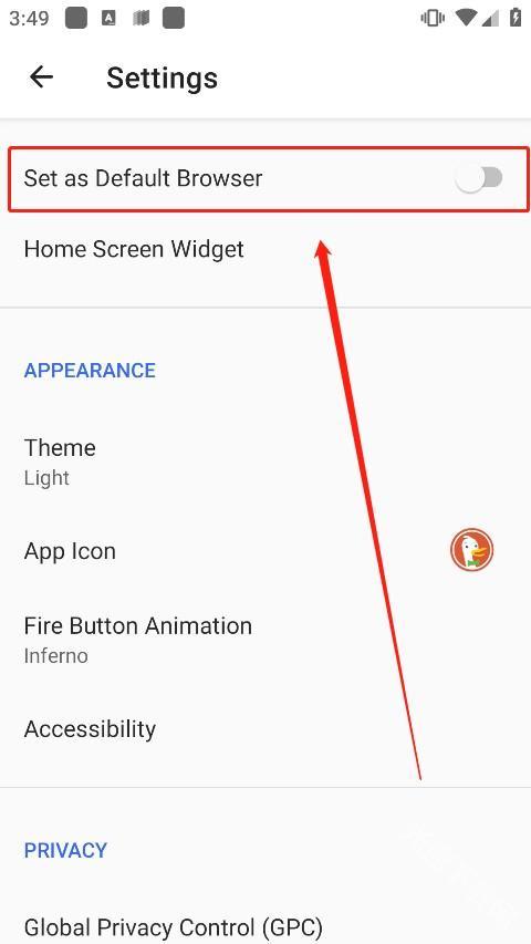 《duckduckgo》怎么设置中文1、下载安装后打开duckduckgo,点击界面右上角的设置图标。