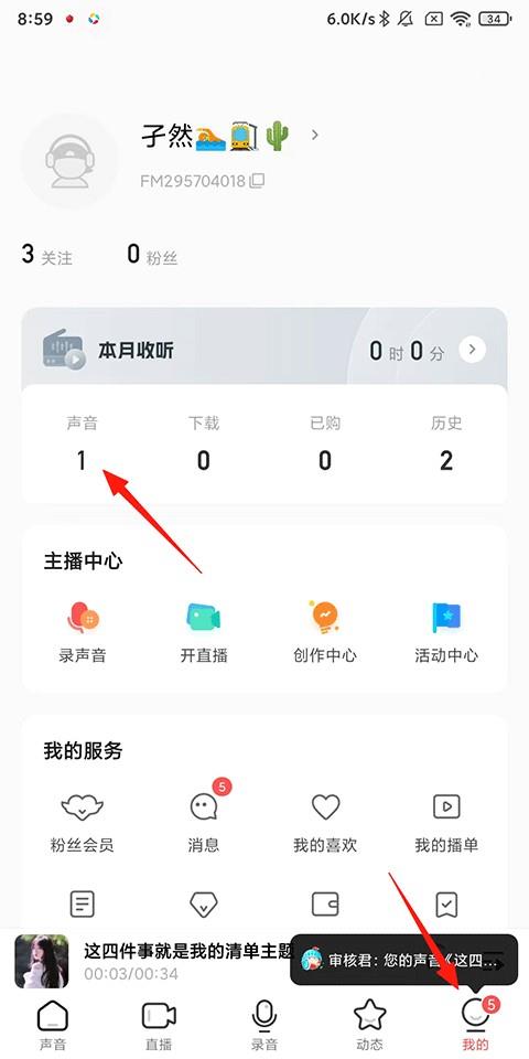 《荔枝》怎么下载导出自己的录音?1、打开荔枝,点击【我的】-【声音】(这里保存的是用户已经配音并发布的声音);