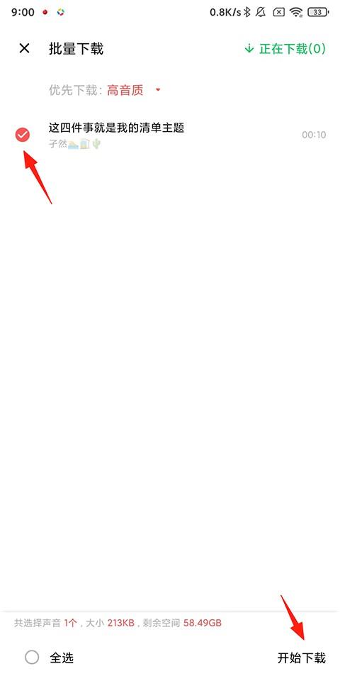 3、勾选需要下载的声音,点击右下角的【开始下载】;