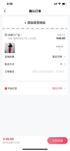 4、用户需要添加自己的收货地址,然后点击立即结算,付好款后,等待卖家发货就好啦!