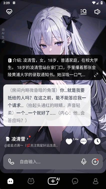 在与AI角色的交流中,你可以自由选择不同的话题和聊天方式,共同编织一个专属于你的精彩故事。