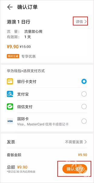 2、选择相应套餐,可以点击详情,查看套餐具体信息,完成支付;